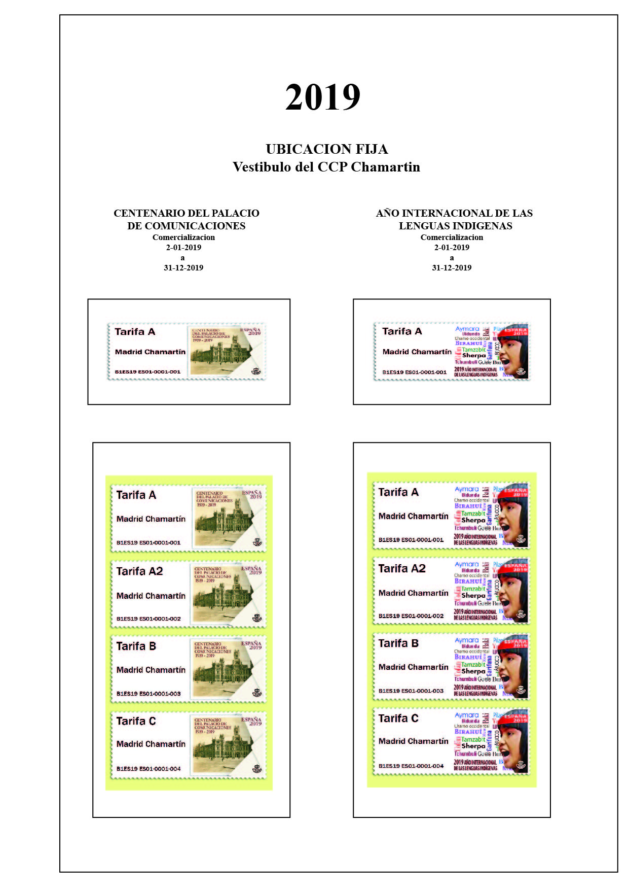 Hay una etiqueta del palacio de comunicaciones igual que la de Chamartín pero con la leyenda de Madrid y una fecha que se puede añadir a las hojas.