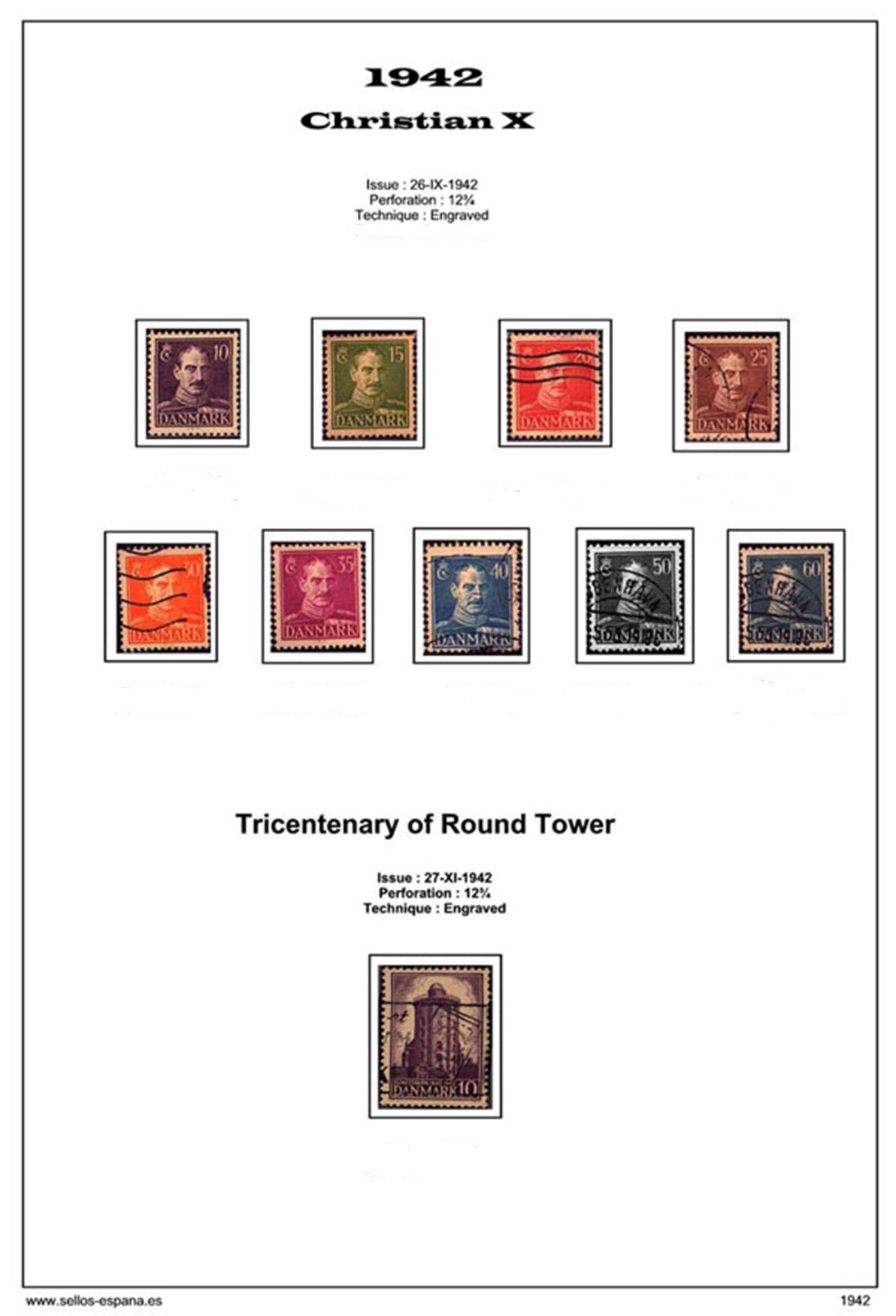 Portada del album de Dinamarca 1941-1950 Primera pagina del album de Dinamarca 1941-1950 Segunda pagina del album de Dinamarca 1941-1950