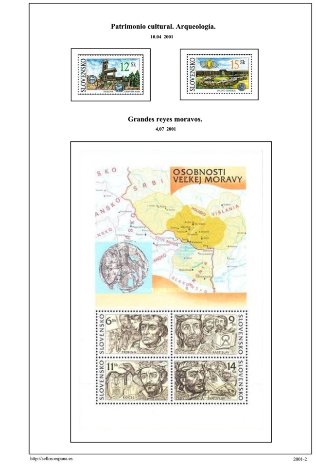 Portada del album de Eslovaquia 2001 Primera pagina del album de Eslovaquia 2001 Segunda pagina del album de Eslovaquia 2001