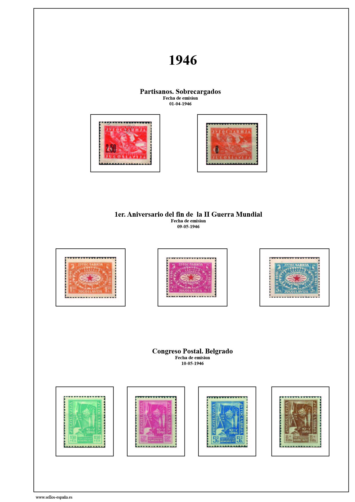 Se conmemora el 1er. Aniversario del fin de la II Guerra Mundial. tambien se emite una emisión de sellos por la reconstrucción de los ferrocarriles y por la juventud yugoslava.